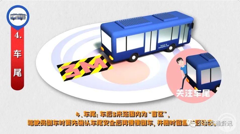4、車尾:車后3米范圍內(nèi)為“盲區(qū)”,駕駛員倒車時要先確認(rèn)車尾安全后再慢慢倒車,并隨時留意車后動態(tài)。