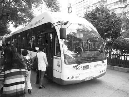 昨日,記者來(lái)到卓刀泉南路方家嘴公交車(chē)站,這里是596路的起點(diǎn)站。15分鐘后,一輛漂亮的新能源白色公交車(chē)開(kāi)進(jìn)了站點(diǎn)(如右圖)。這輛公交車(chē)外觀和普通公交明顯不同,車(chē)身以白色為主,前車(chē)窗占整個(gè)車(chē)頭前面的一半,車(chē)廂兩側(cè)的車(chē)窗也占車(chē)身高度的一半,從外觀上看,比普通公交車(chē)要大得多。