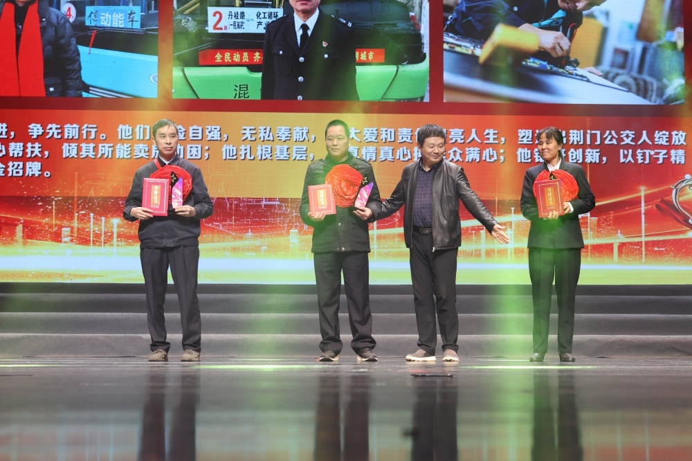 頒獎(jiǎng)環(huán)節(jié),在荊門公交發(fā)展歷程中做出過(guò)杰出貢獻(xiàn)的8名“時(shí)代標(biāo)兵”人物,被授予“崢嶸歲月”“風(fēng)華正茂”“無(wú)悔青春”時(shí)代標(biāo)兵,感謝他們一路走來(lái)的無(wú)私付出和拼搏奮斗。