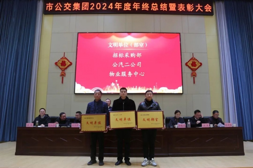 1月21日,市公交集團(tuán)隆重召開2024年度總結(jié)表彰大會,市政府國資委黨委委員、副主任鄧興權(quán),市客管處黨總支書記、處長劉來斌出席活動并講話。集團(tuán)黨委班子、全體中層干部、一般管理人員及部分職工代表參會。會議由集團(tuán)黨委副書記、總經(jīng)理李曉麗主持。